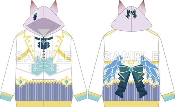 勝負服をイメージしたフルカラーパーカーで、フードに耳まで付いたかわいいデザインが特徴です。
